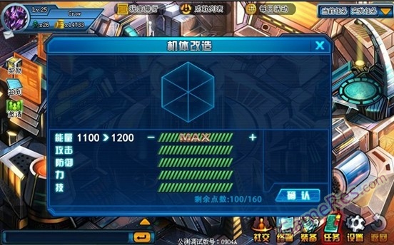 1)随着玩家等级提升,玩家将获得一定量的机体改造点数;用于强化自己机体的各项属性;