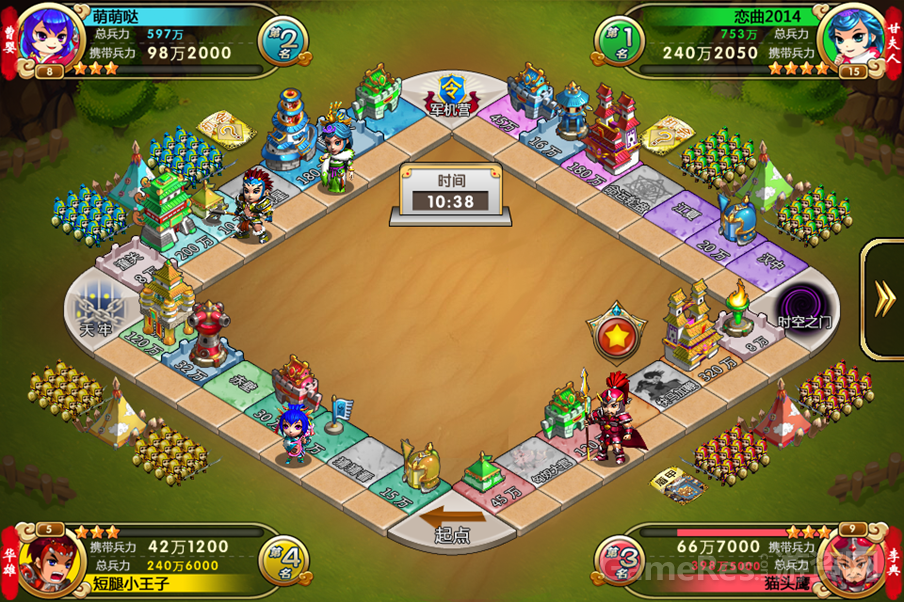 3.《触控三国》与传统大富翁玩法的相同点:有很强的随机性(博弈)与策略性;不同点:加入了PVE推图、卡牌、骰子、装备,宠物养成等新鲜元素,同时玩家可以通过消费来提升实力