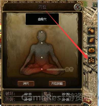 1.开放穴位冲穴功能,70级为满级,满级后才可冲穴,目前仅开放曲骨穴, 冲穴后降为1级,全属性+20, 每个职业开放两个新技能,屏幕右边小图标打开穴位界面