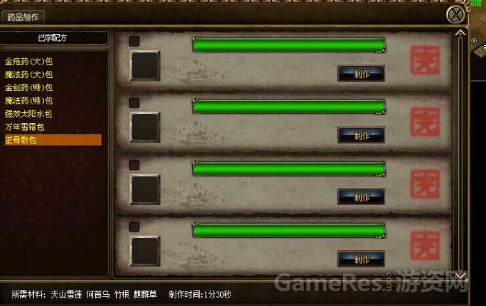 3.大幅缩短制药时间,同时取消小怪万年雪霜的掉落