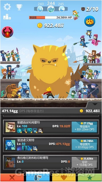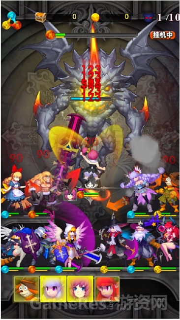 通过点击屏幕触发主角挥舞魔杖来攻击恶魔,主角周围的英雄自动攻击;
