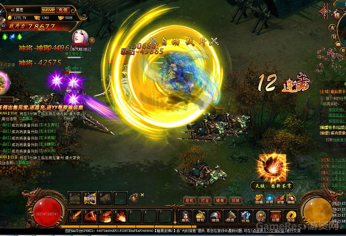 热血挂机为强制仙盟模式,活动场景有4个boss,分别为乘黄、犀渠、马腹、狍茑,击杀boss可以获得大量经验和道具奖励,带领你的仙盟在场景里争夺稀缺的资源吧!