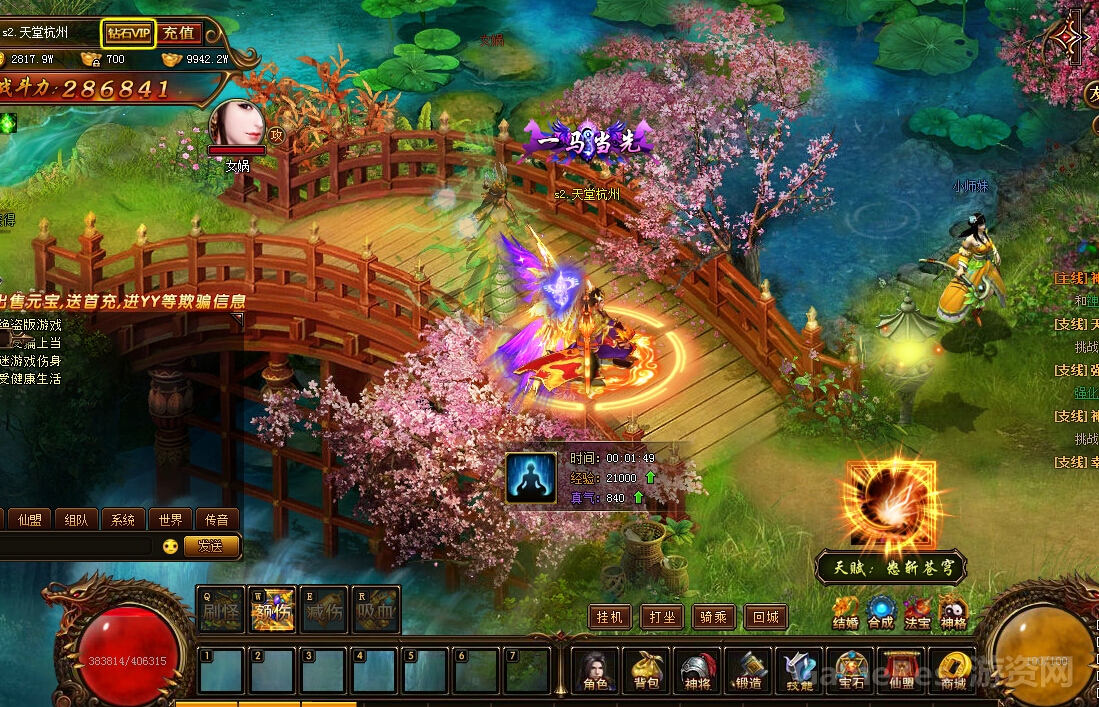 每天12:00-13:00及17:45-18:45,游戏开放挂机试炼场活动,玩家可以选择开心挂机及热血挂机2种场景