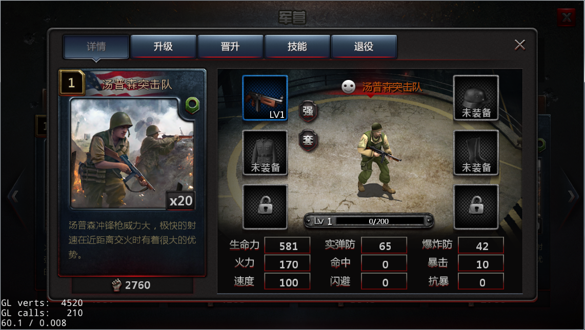 国内罕见的二战写实题材游戏;真实模拟RTS游戏的即时制感觉;卡牌收集真实还原二战的士兵与战车;体验还原度极高的二战剧情关卡;策略玩法极强,兵种克制,排兵布阵,极度真实的陆战体验;创新玩法系统与独一无二的游戏风格;注重UE效果,操作体验一流。