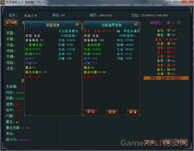 1.开放地图193张,装备等级1~193,套装1~96个级别,99%的装备名字不会重名