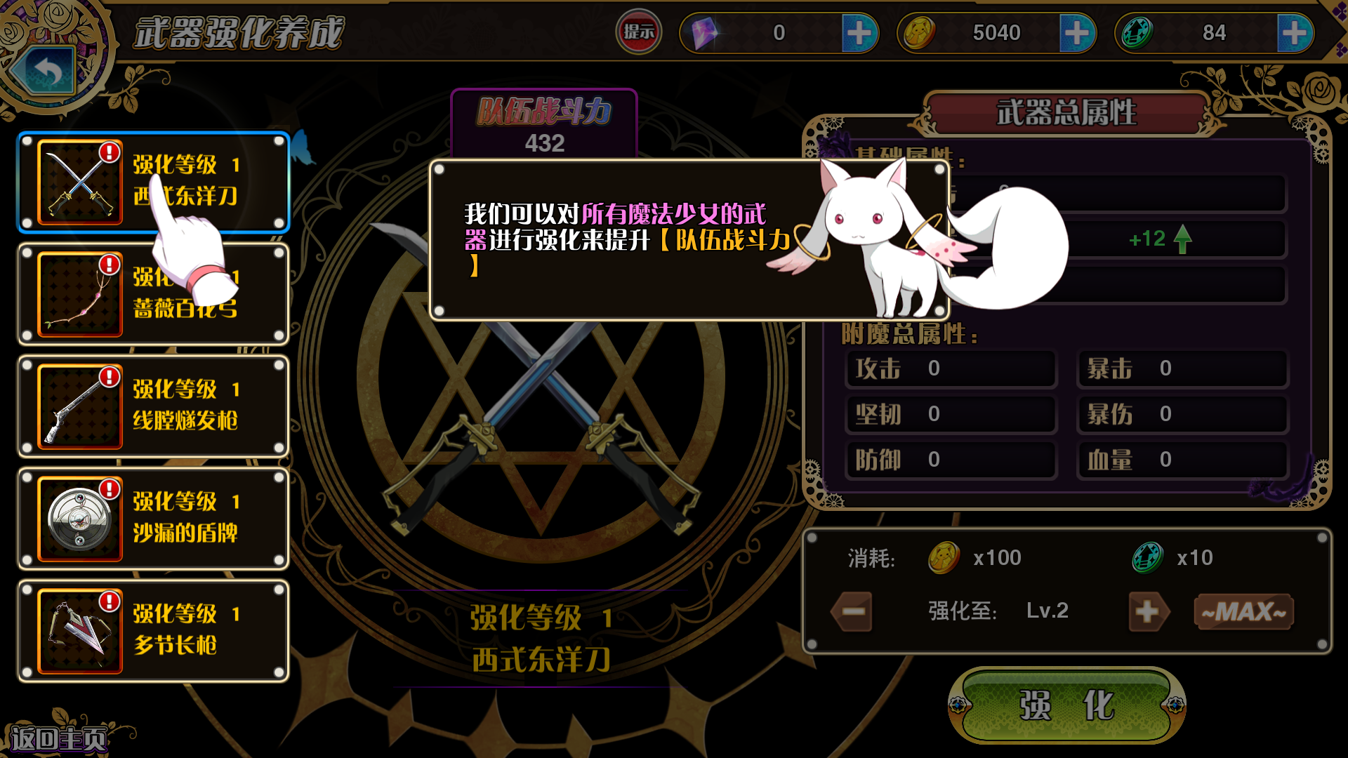 结界战、救援战,轮回的战场,魔女的世界......各个副本,等你来战!鹿目圆的蔷薇花开弓、晓美焰的金属盾牌和RPG-7、美树沙耶香的刀等等,游戏完美还原了每位魔法少女战斗动作,玩家指尖操控魔法少女,获得非凡的战斗快感。