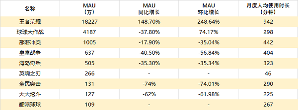 目前《开心消消乐》的MAU已经有触顶维持的迹象,但《王者荣耀》仍在以148%的同比MAU增长率,朝着2亿俱乐部的目标奔去。