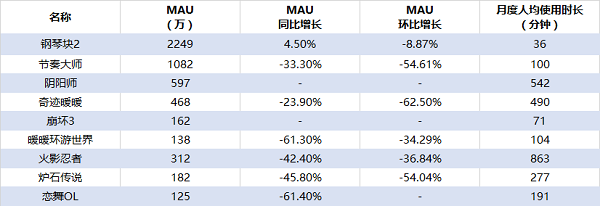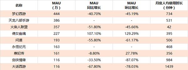 不过值得注意的是,MMO游戏月度人均使用时长都非常惊人,底蕴十分深厚。《大话西游》月度人均使用时长就达1439分钟,超过自家兄弟产品接近一倍,比《王者荣耀》还要高出34.53%。