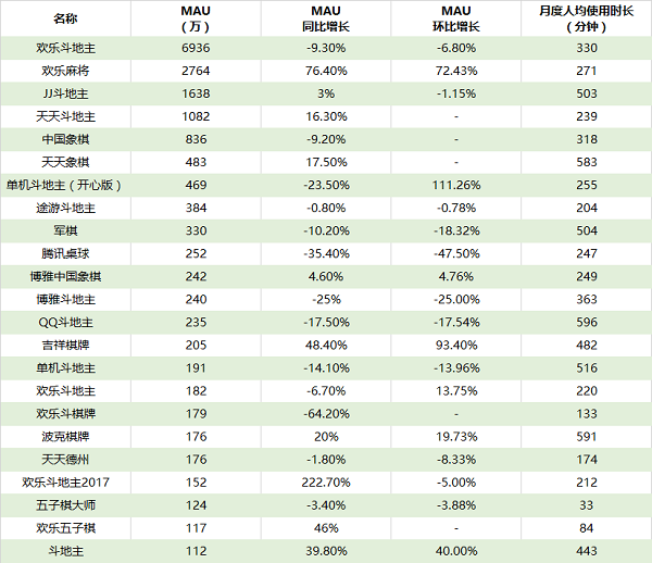 棋牌游戏:斗地主拔得头筹,数量庞大