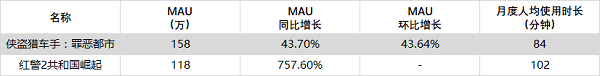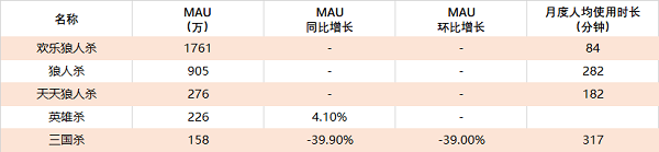 传统桌游保持了较为良好的维持势头,《英雄杀》和《三国杀》的MAU则分别为226万和158万。