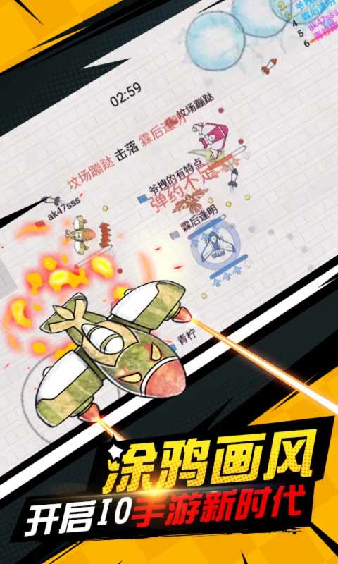 《小飞机大战》是一款集涂鸦画风、飞行射击和模拟养成为一体的休闲小游戏。在游戏中每个玩家控制一架飞机,在有限的战场上进行PK、对战。击落敌机或拾取道具可以获得积分,游戏结束后积分最高的玩家即可获胜。玩家可选择升级自己的战机,从而获得更高的原始属性!