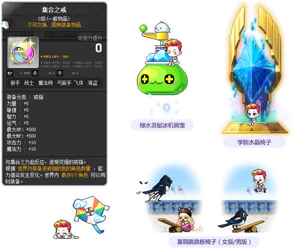 最后,V150版本中的诺巴福利内容也将更上一层楼~“绿水灵刨冰机骑宠”、“喜鹊跳跳板椅子”、“集合之戒”等实用道具将加入诺巴商店;另有保持在线拿“诺巴甜蜜纪念币箱”、更新游戏领取“500颗星星”奖励等活动等你来参加哦~