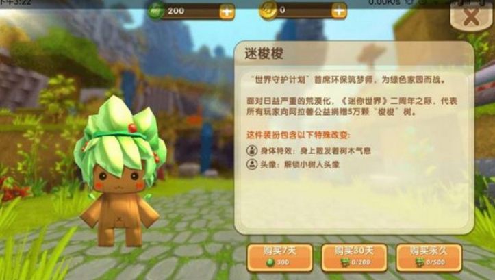 今年 3 月开始,《迷你世界》就围绕 " 环保公益 " 精神,先后推出了迷你世界植树节活动、" 世界守护计划 " 环保签名活动等,又上线了 " 一亿棵梭梭 " 官方地图、全新永久皮肤 " 迷梭梭 " 等等,让玩家在游戏过程中,通过游戏角色、游戏体验等形式,来认知并了解地球荒漠化的严重性,唤起玩家对环保的关注。