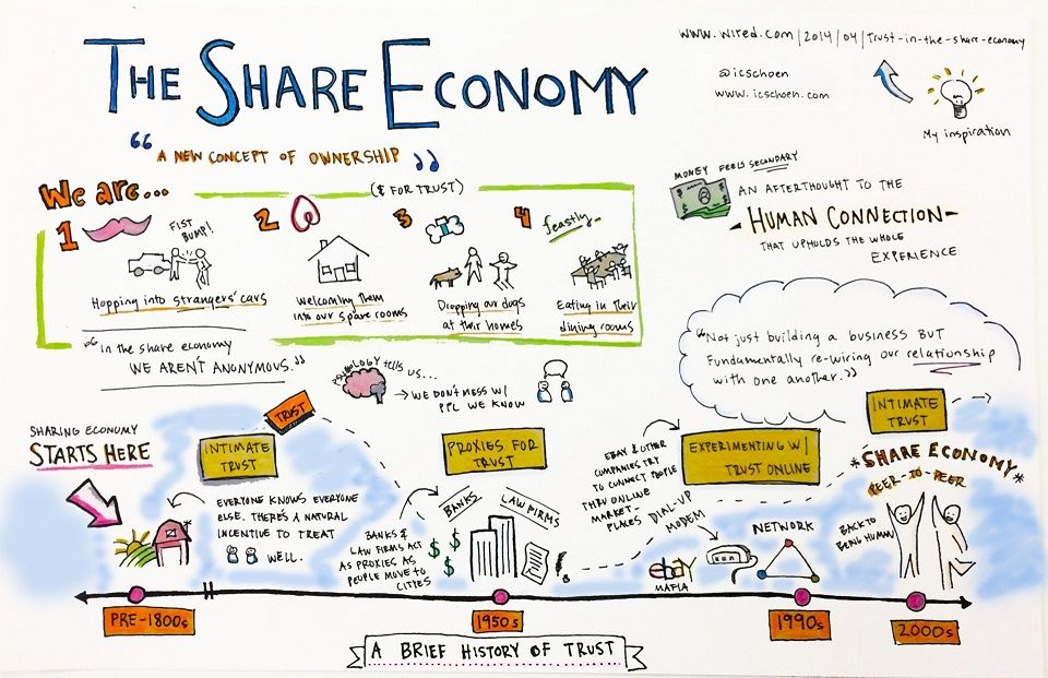 於是几种「避免浪费」或「提高效能」的发展趋势便开始出现,有人拥有实体工具而为旁人提供服务、或将这些闲置物品抛售甚至转让流通、或者透过社区与社群网路来共同分享与交换等等。换言之,当人开始觉得「拥有财产」是种累赘,那麽就会产生更富弹性、更不浪费的解决方案。这就呼应了「随选」和「租用」式的流动性共享关系。