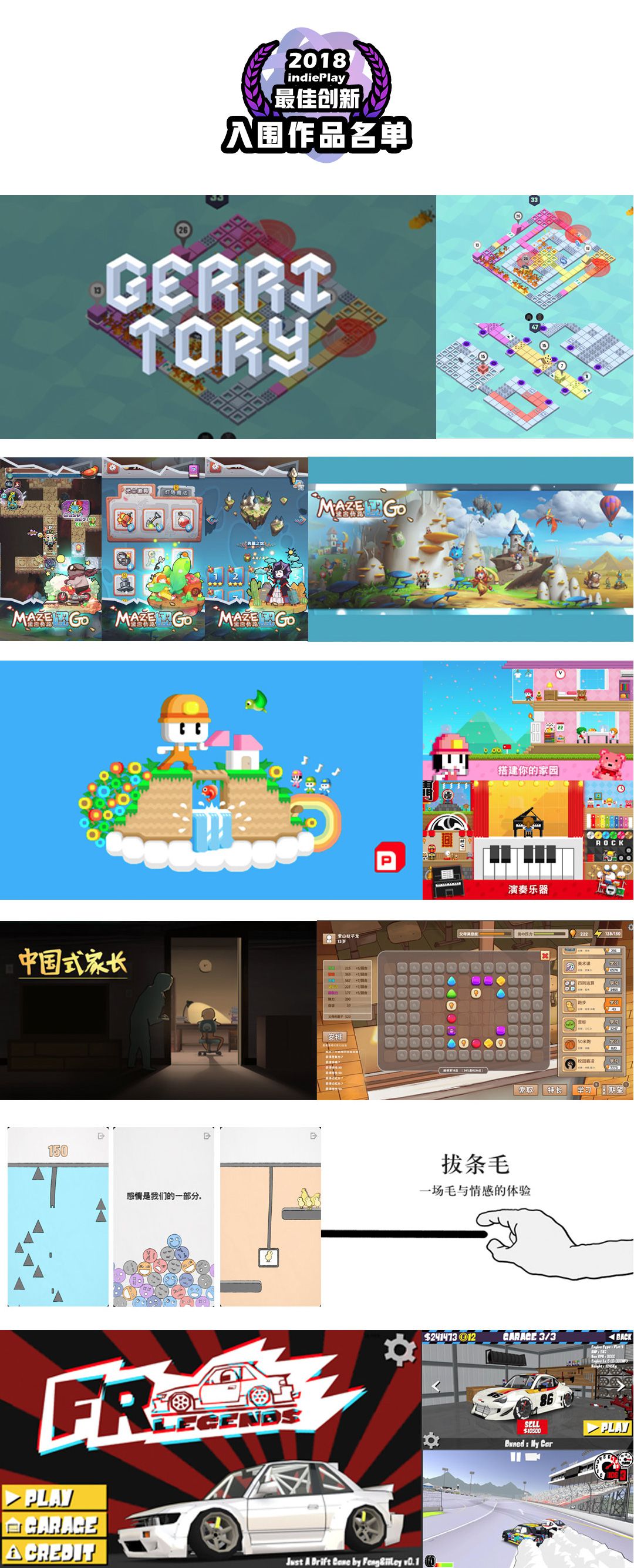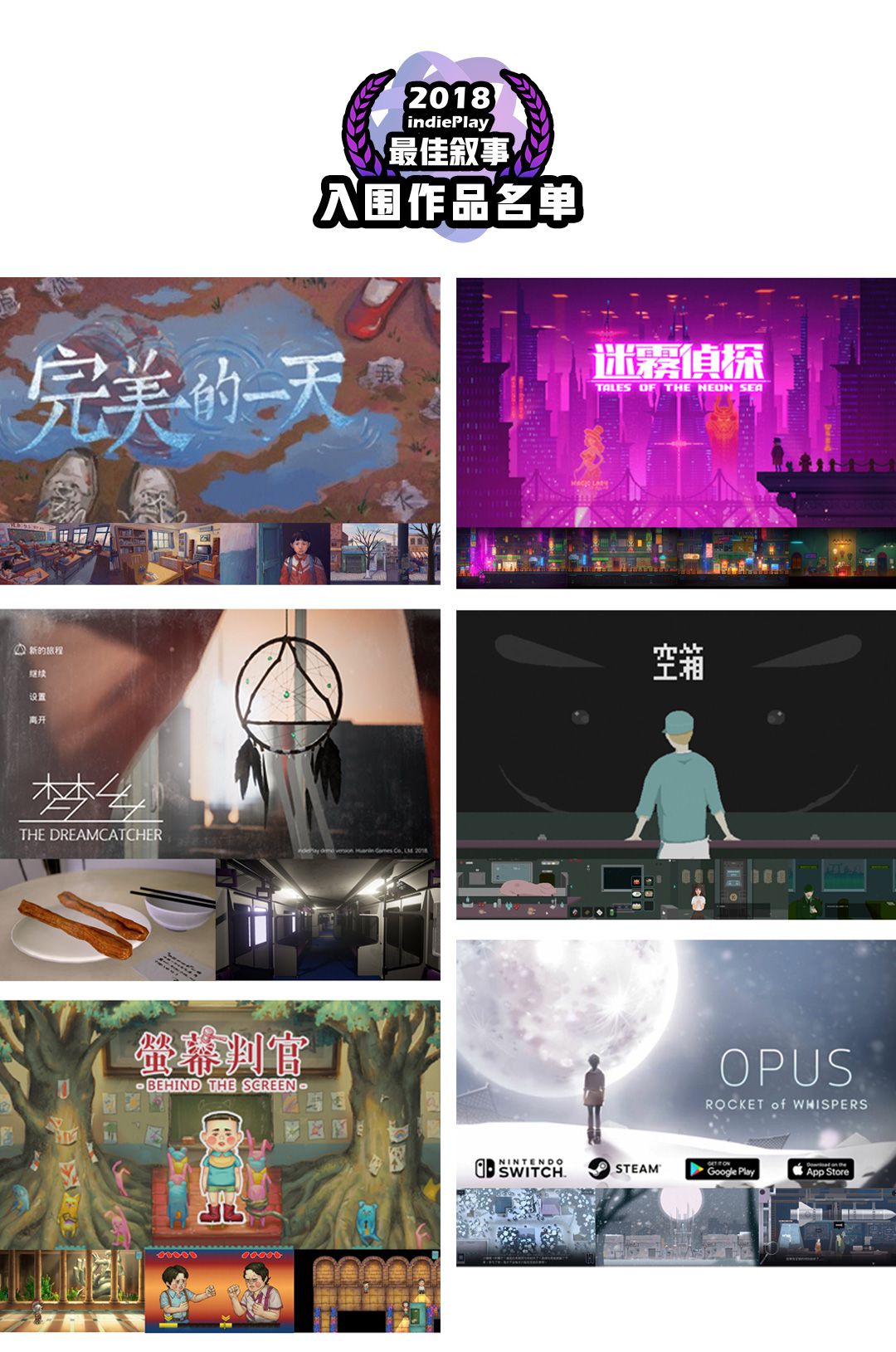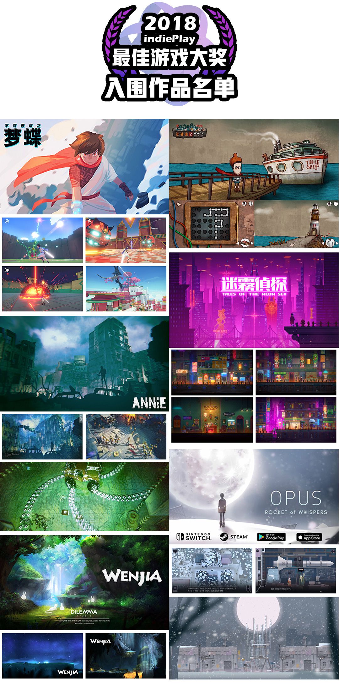 2018 indiePlay各奖项入围作品名单如下(排名不分先后)